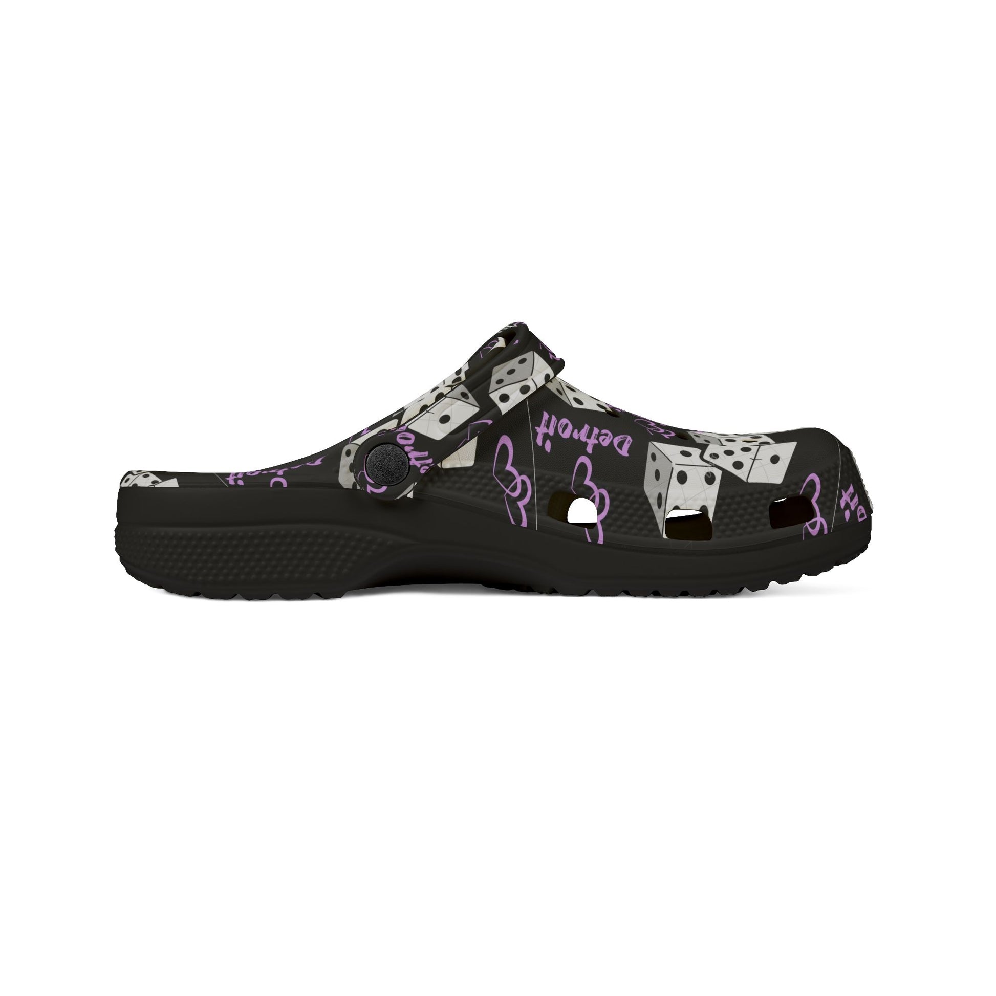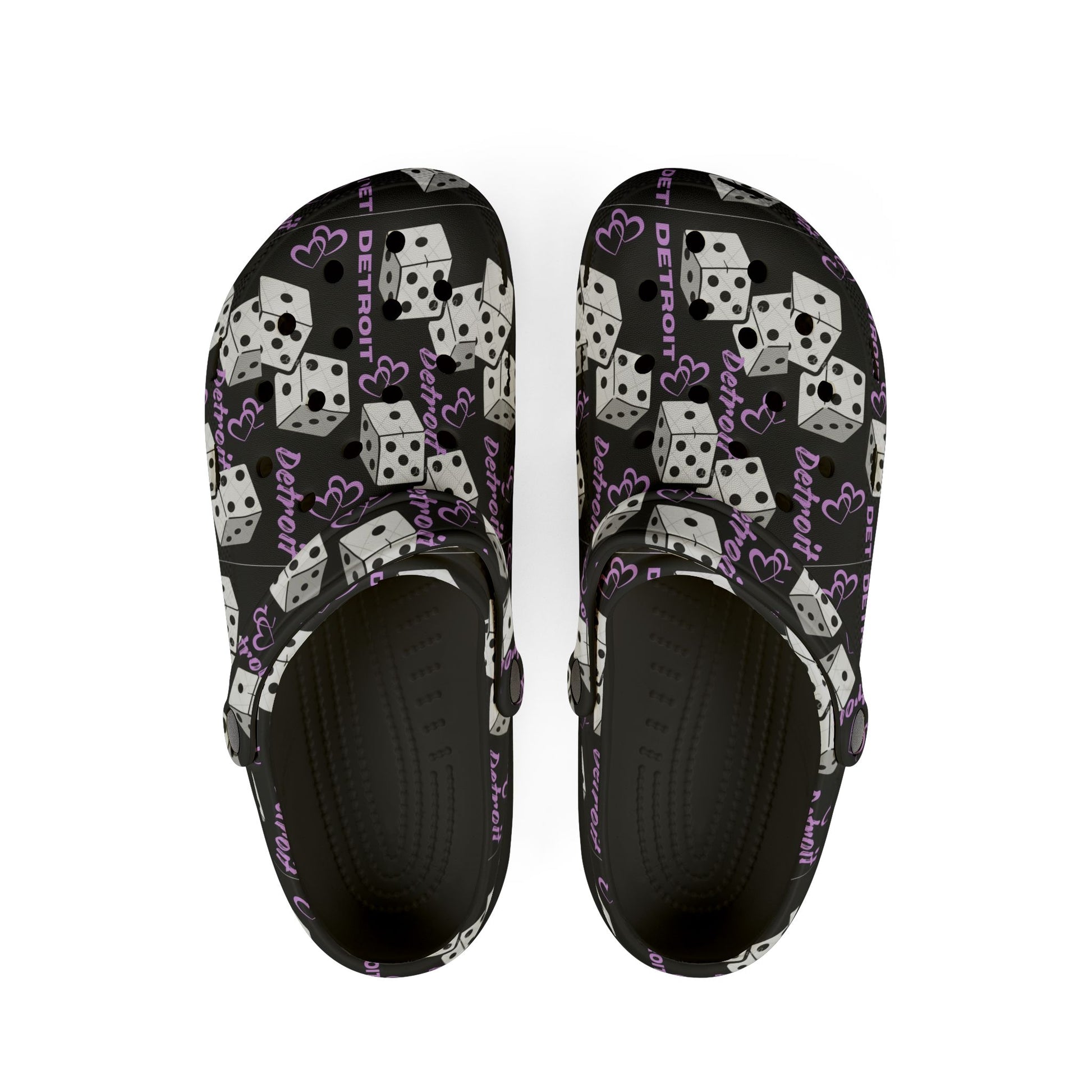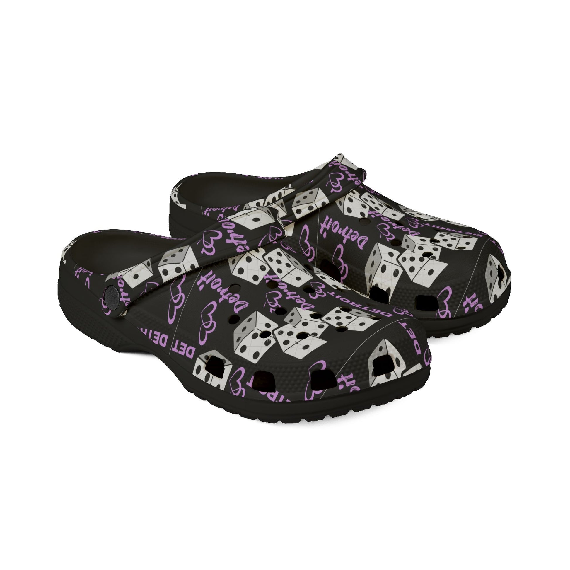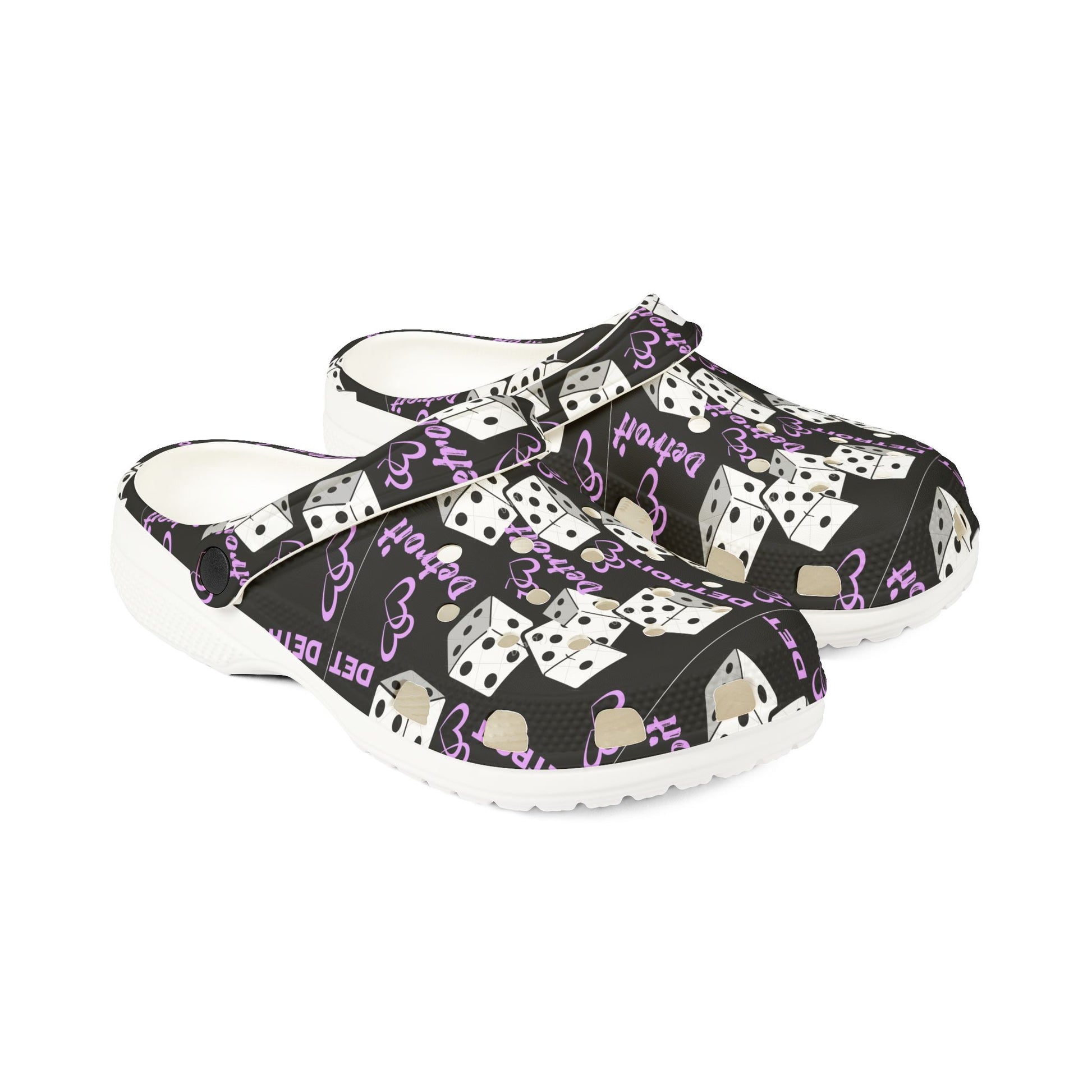 Detroit show girls Purple Dice Print Clog Shoes – Lucky Dice EVA Foam Slip-Ons