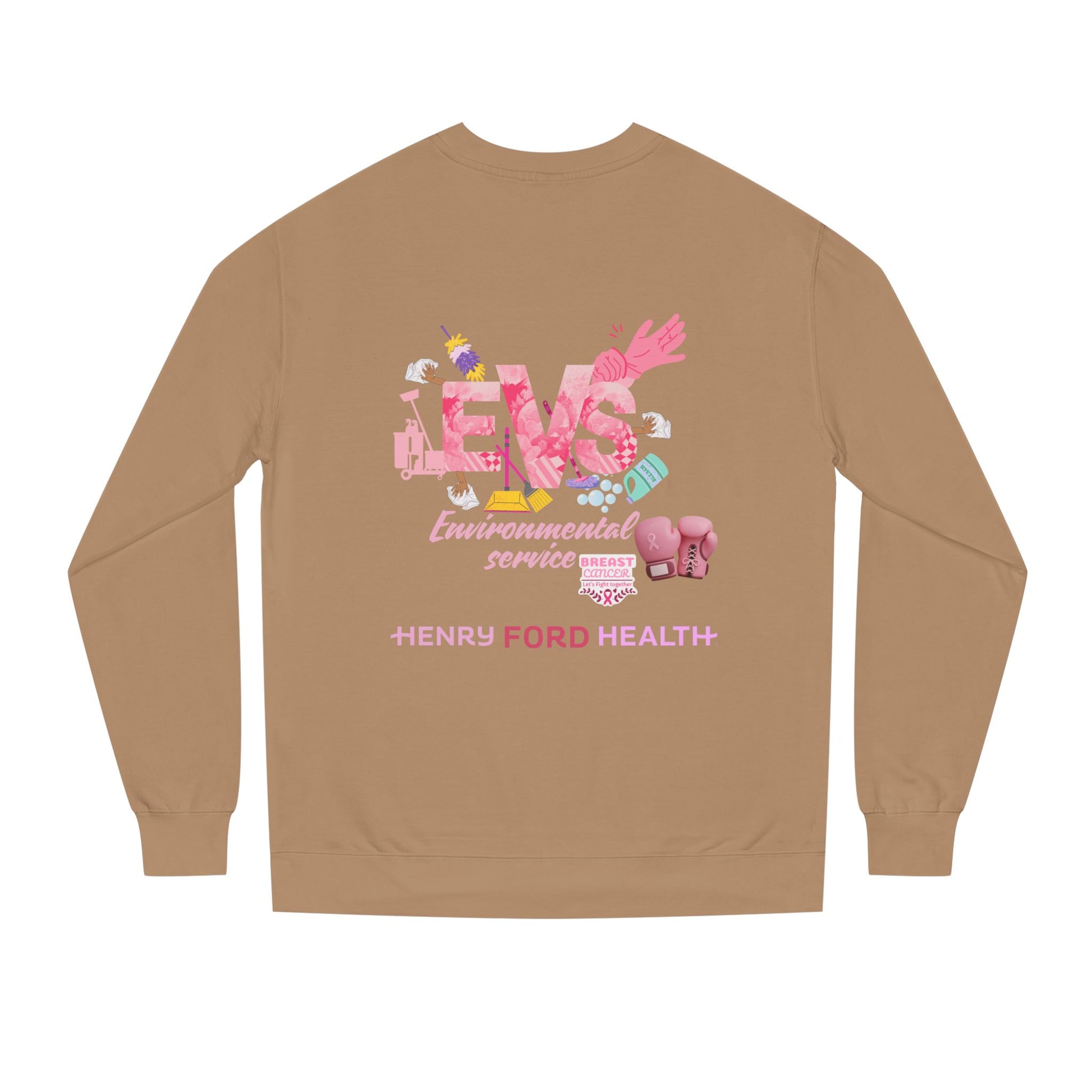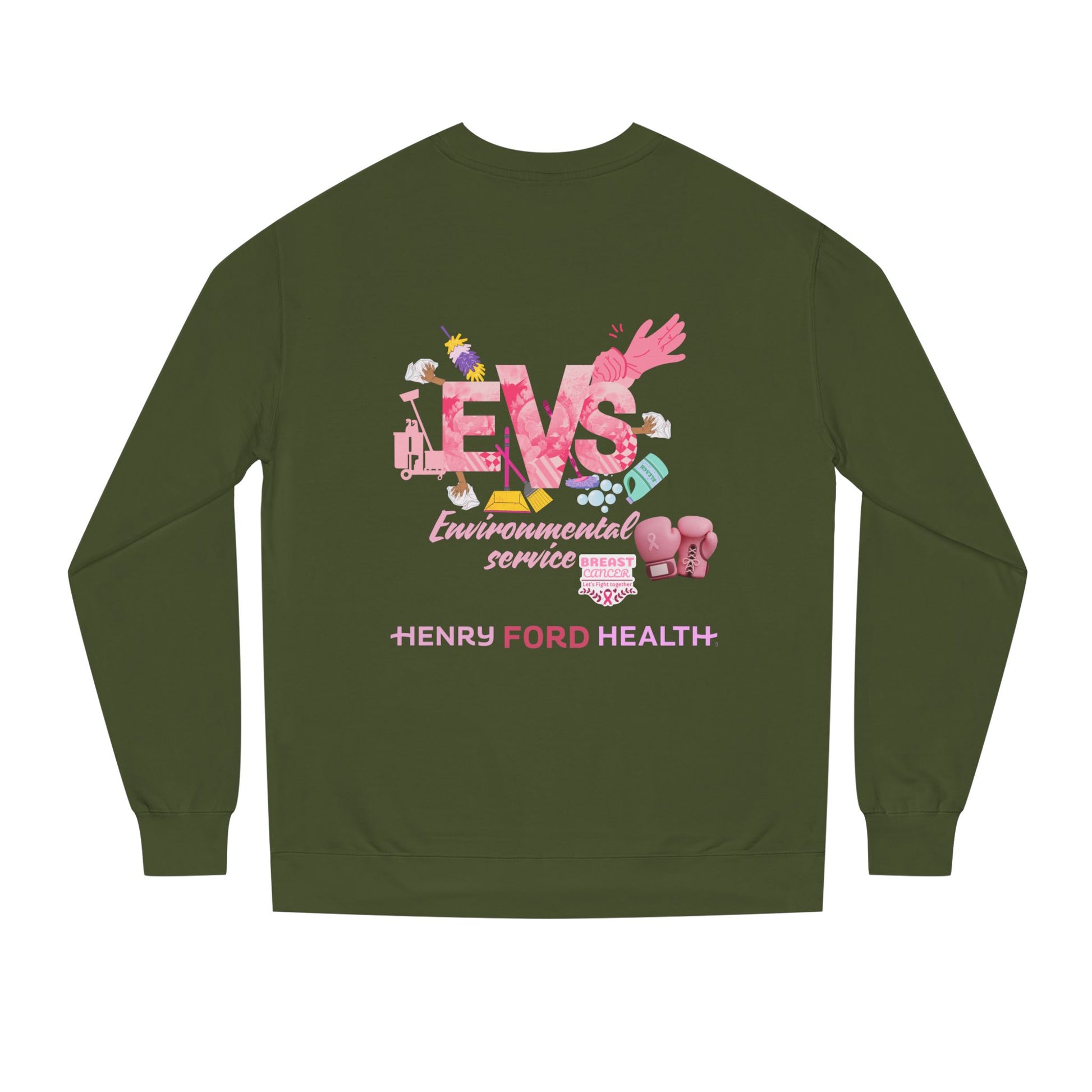 E.V.S breast cancer Unisex Crew Neck Sweatshirt for Cancer Awareness, Support Staff Apparel, Pink Ribbon Gear, October Fundraiser, Empowering Health Wear